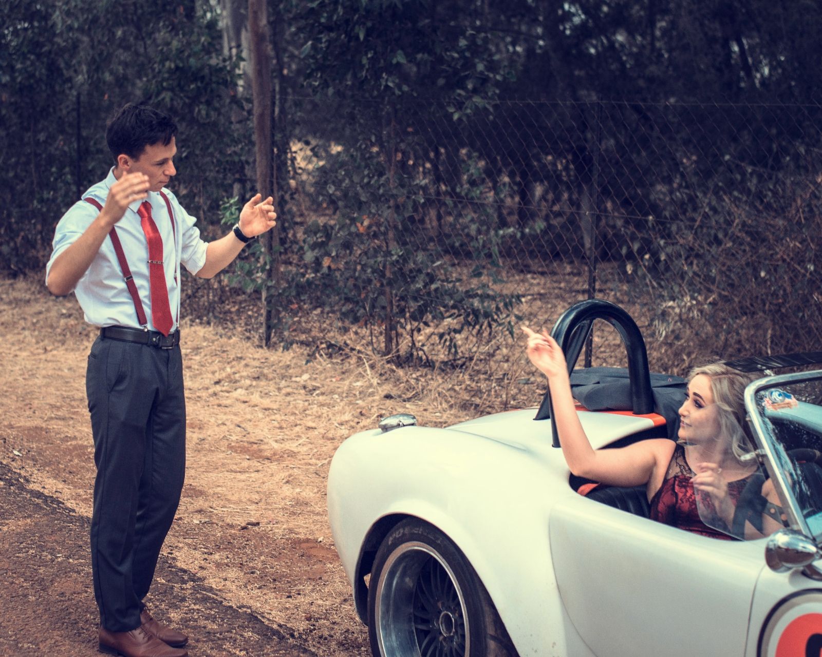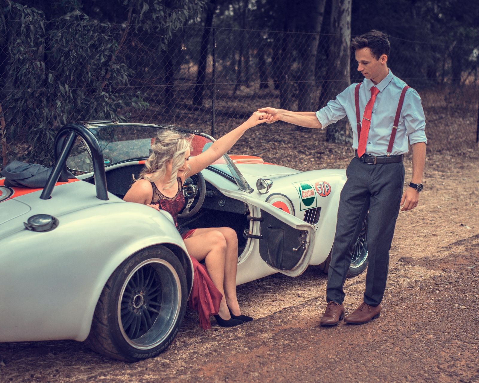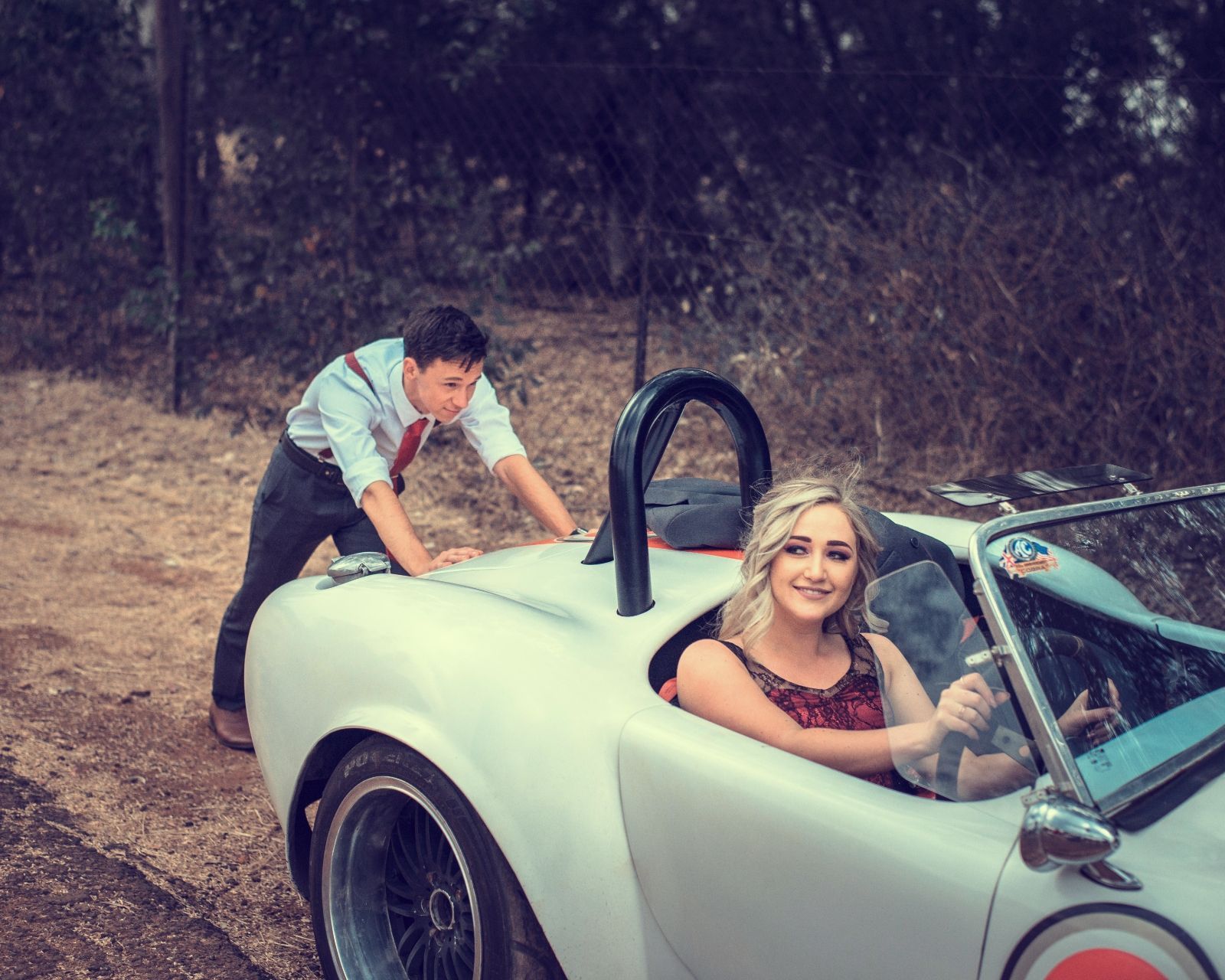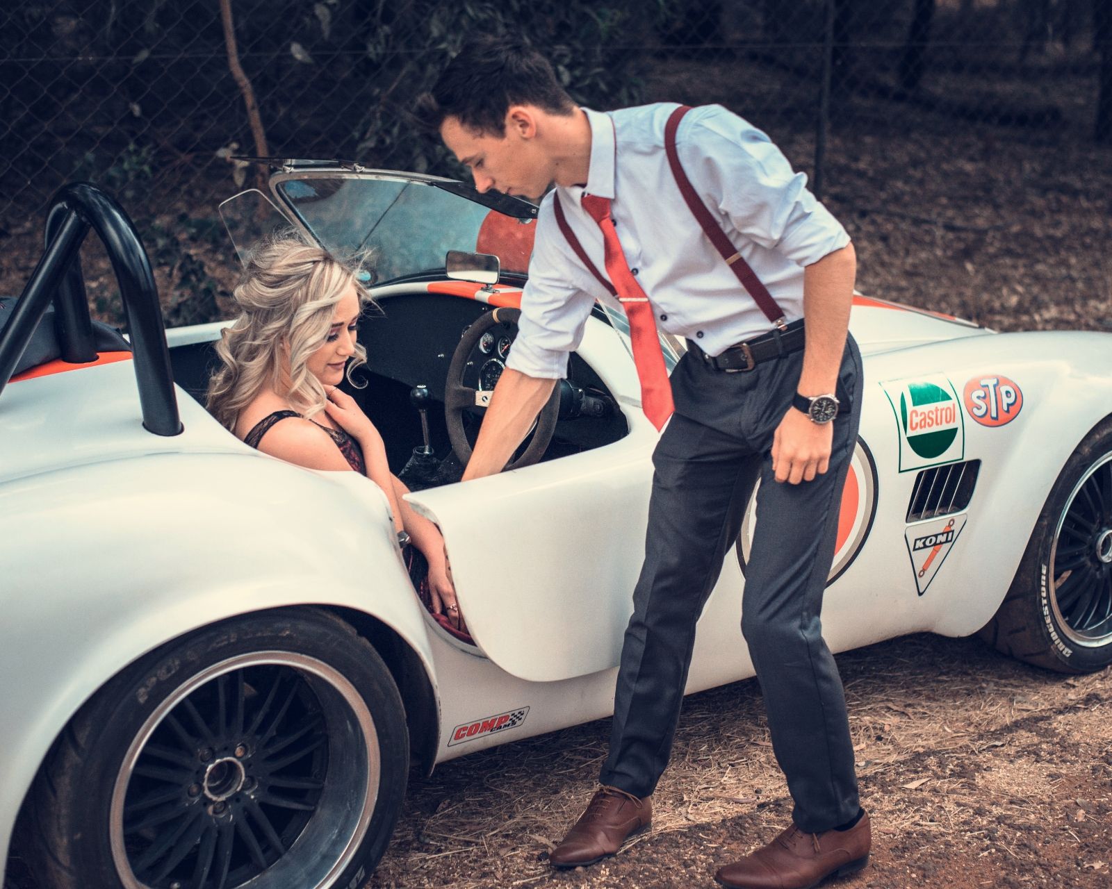 This beautiful couple in love cannot imagine life without adventure and their beloved retro sports car. Amazing people, true feelings and really gorgeous car.